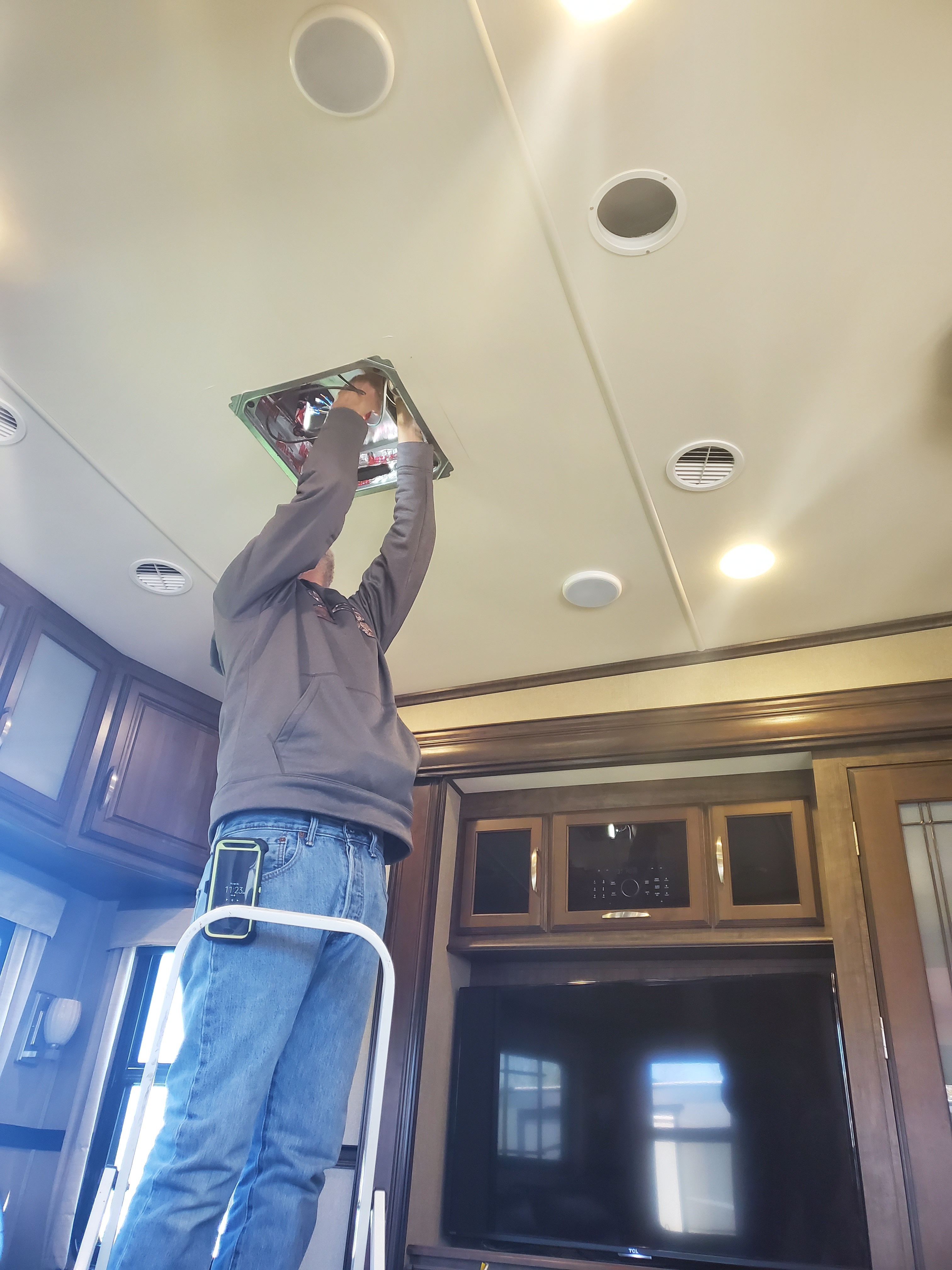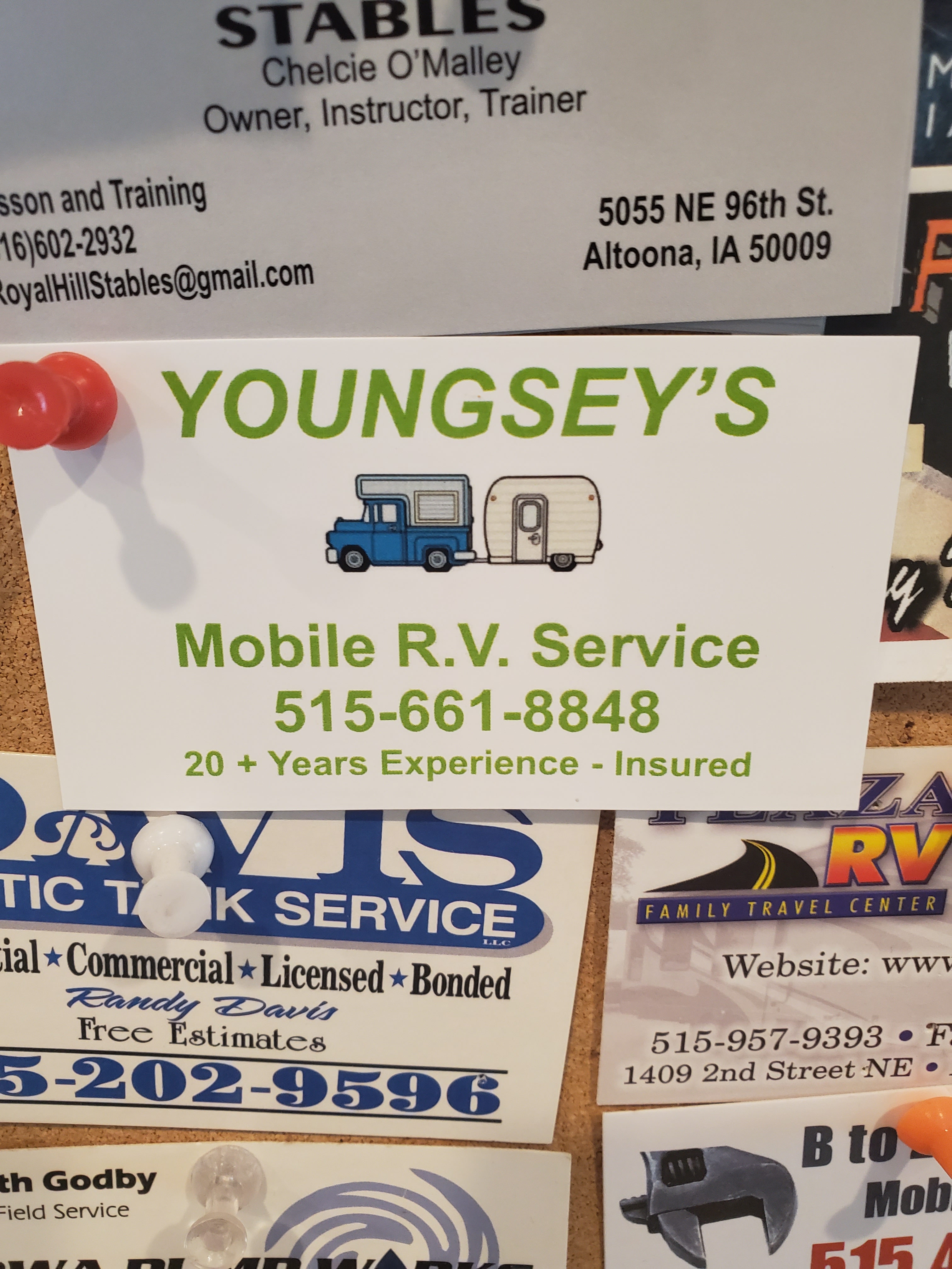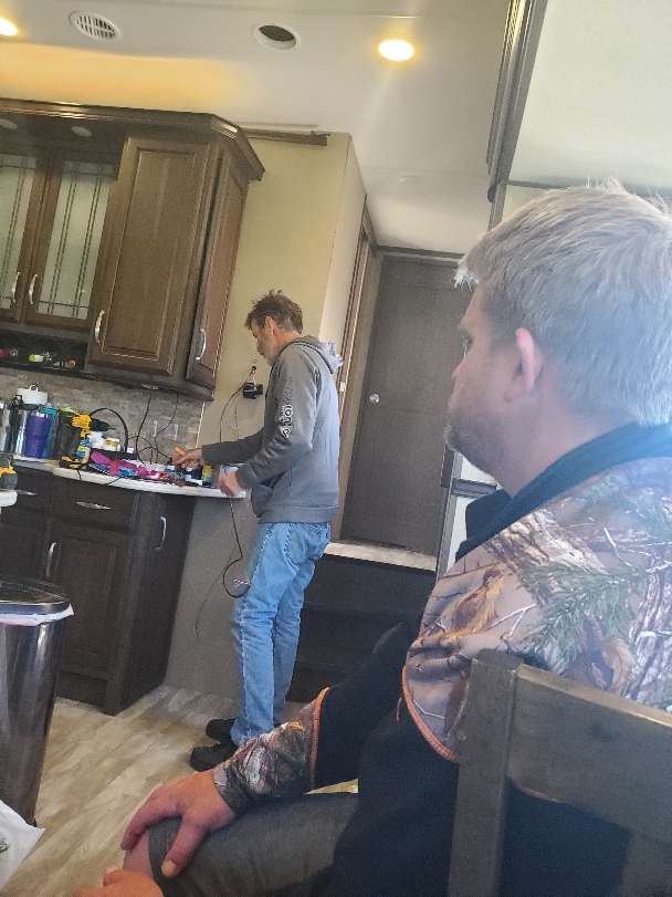 If you are ever in the greater Des Moines area and require a mobile RV Service, may I please submit Larry Youngsey for your consideration. Jim was installing a wifi extender on the roof and, while drilling a hole through the roof, ended up catching the thermostat controller wire, rendering our a/c and heater inert. Luckily, due to the ever-fluctuating temps in the mid-west, our beautiful 80 degree weather (that would have melted us inside the camper) had turned to storms and 40 degrees. We were able to keep things warm via electric heater means until Larry could ride in on his white steed. To be fair, Jim had come up with the solution, but needed someone taller than 5’1 to assist. Through teamwork, we were up and running in a day. AND we decided that must be long lost siblings…the guy misplaced (and found) several tools while he was here and left a blood trail after catching his finger on a nail.