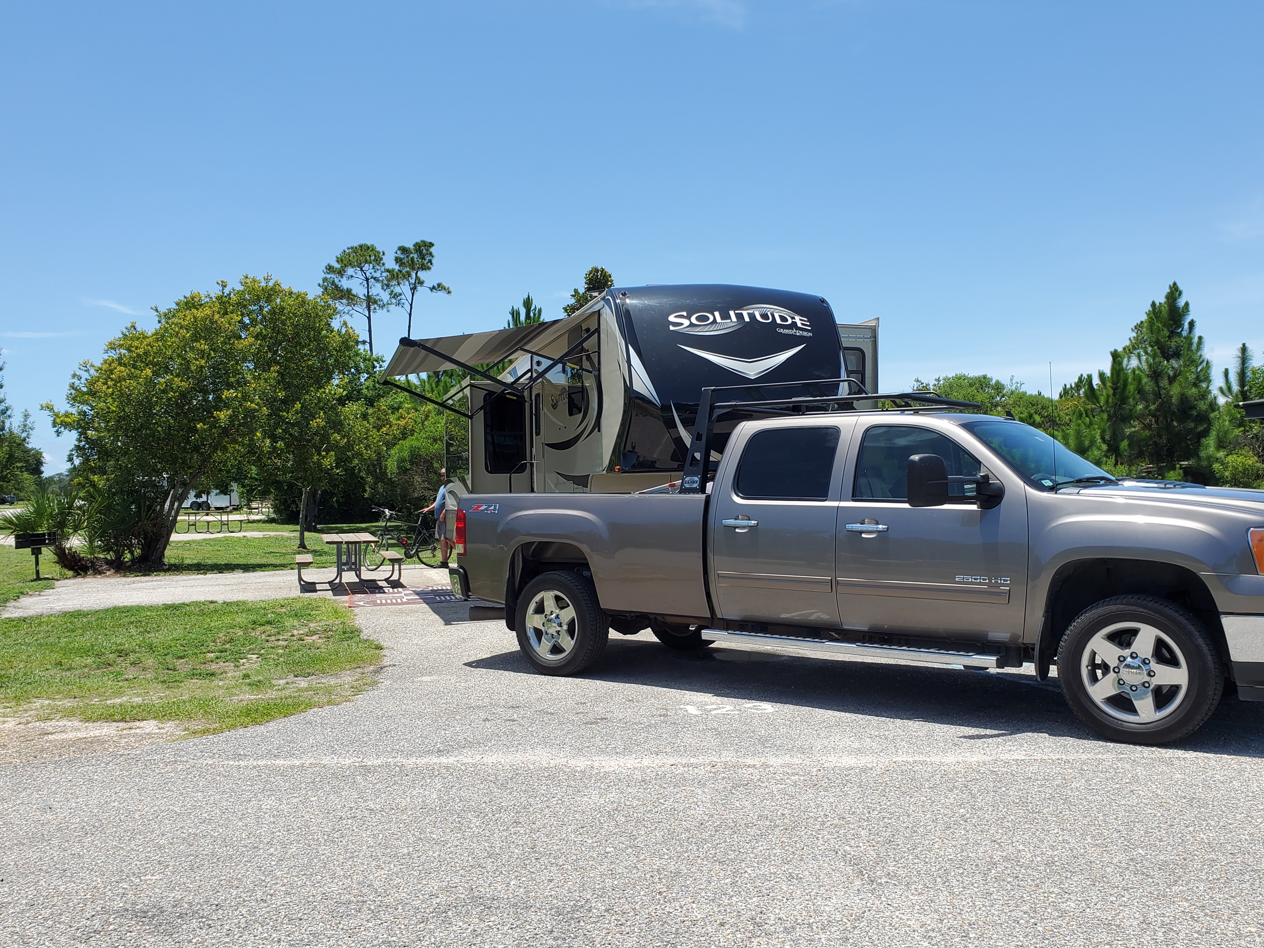 Absolutely stunning State Park with miles of bike/walking trails and 2 miles of pristine white beaches. So amazing, we stayed a week longer than we had planned – definitely going back!! We fished for Red Snapper and got some face time with a gator!