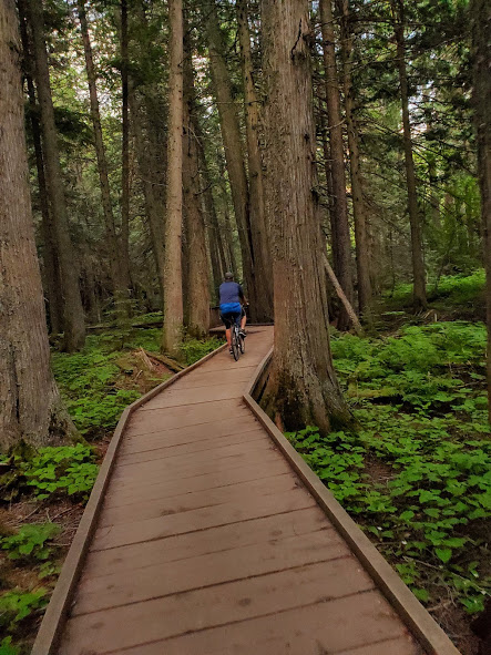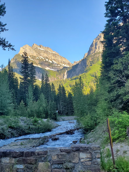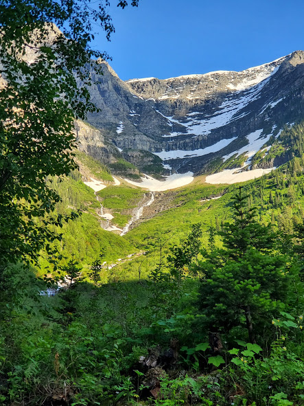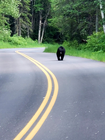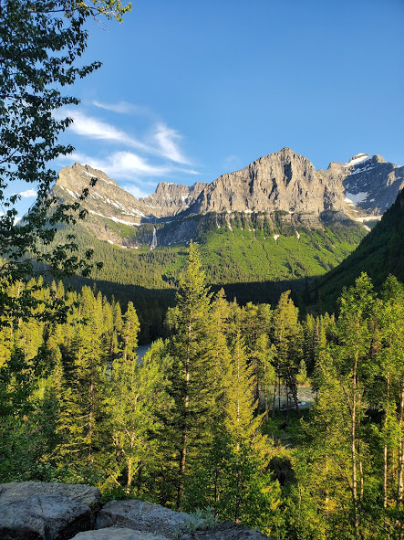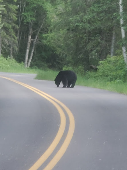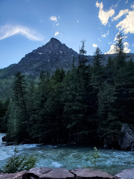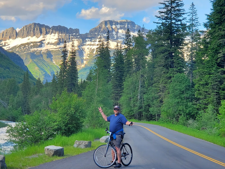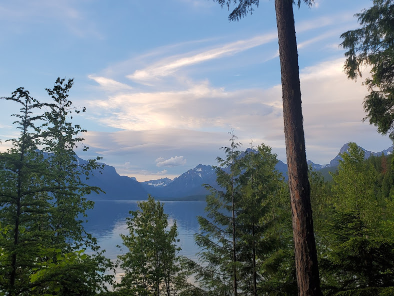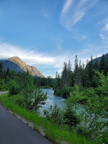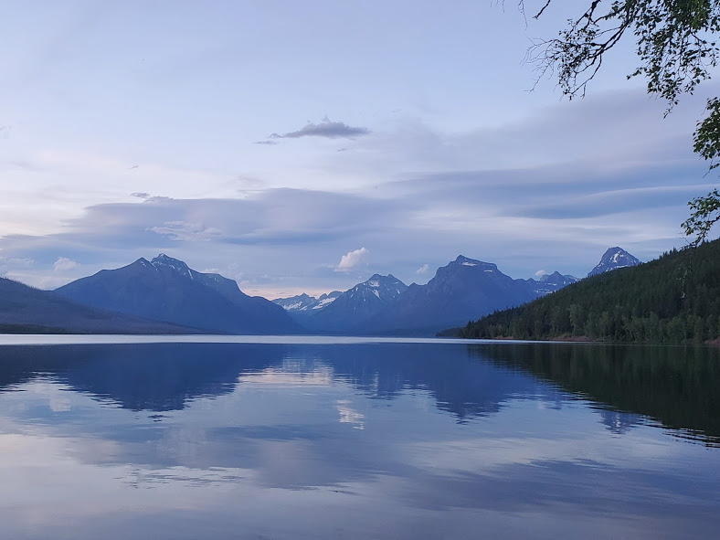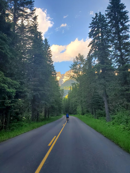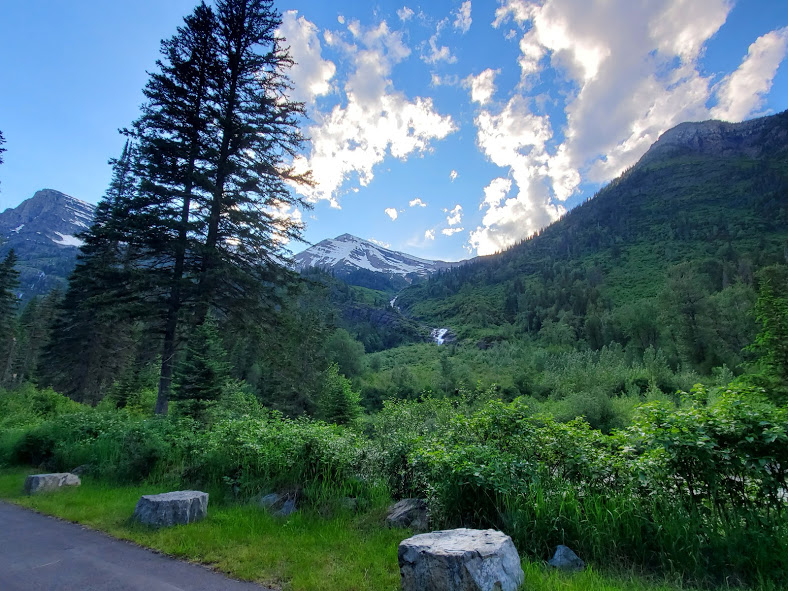We had an exciting bike ride in Glacier. The waterfalls were noticeably larger than last time we’ve been there. We followed a big black bear up the road for a bit until he got bored and took off. On our way back down, he was coming up the road again. After backing up for a little while, there were about 15 of us, so we lined our bikes on the opposite side of the road. The bear walked up the road through about half our line, then went off into the woods. It was pretty surreal being about 20 feet from the bear, he was pretty relaxed and walking slowly, and had obviously been eating well, but it was pretty crazy. On the way out of the park, we saw our first moose, drinking water across the river. A sunset on Lake McDonald topped off a great evening.