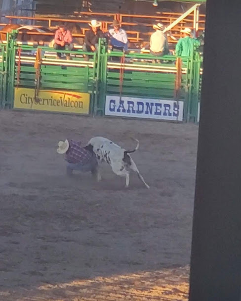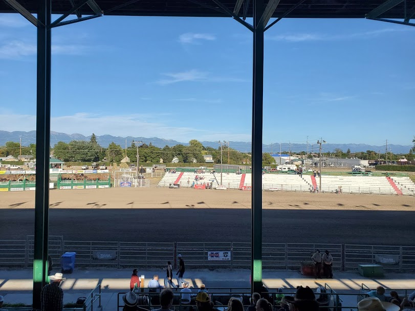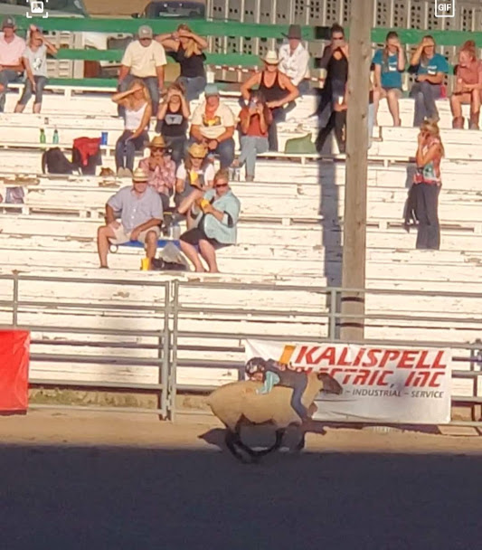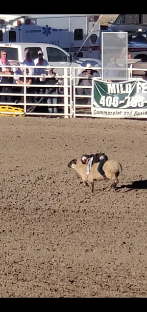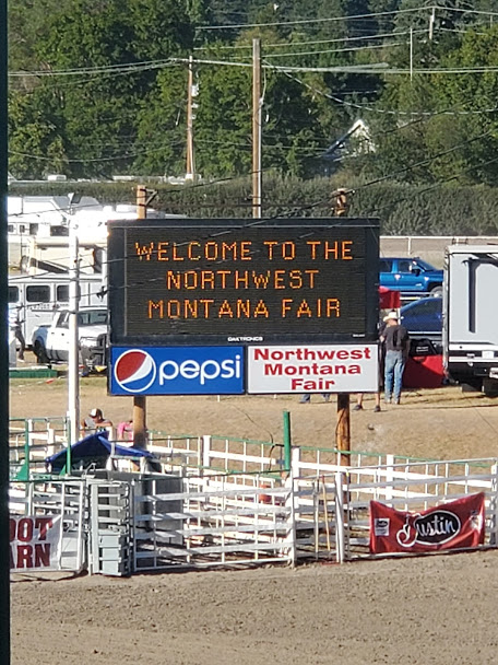 The hike was great and took us to an overview of Whitefish and Whitefish Lake (Nickel was not very impressed with the view). The fair was slimmed down from the usual version and was made up entirely of 4-H animal and plant entries. It was really cool to see the young girls out there pushing cows around and sitting in the corrals with their animals making sure they were eating their dinners. We watched a teenage boy milking a cow and talked to another who was in with the miniature horses. The rodeo was awesome and started with kids riding sheep. The 6 year old who rode his sheep backwards ended up winning. This is the kind of rodeo I miss, cow roping, bronc riding and bull riding. Halftime was a 12 year old Blackfeet Fancy Dancer who has won world champions.