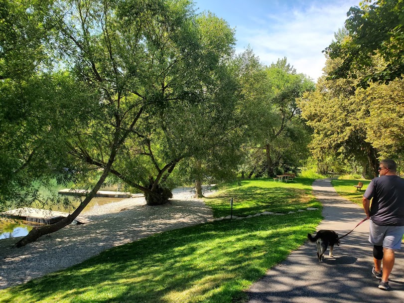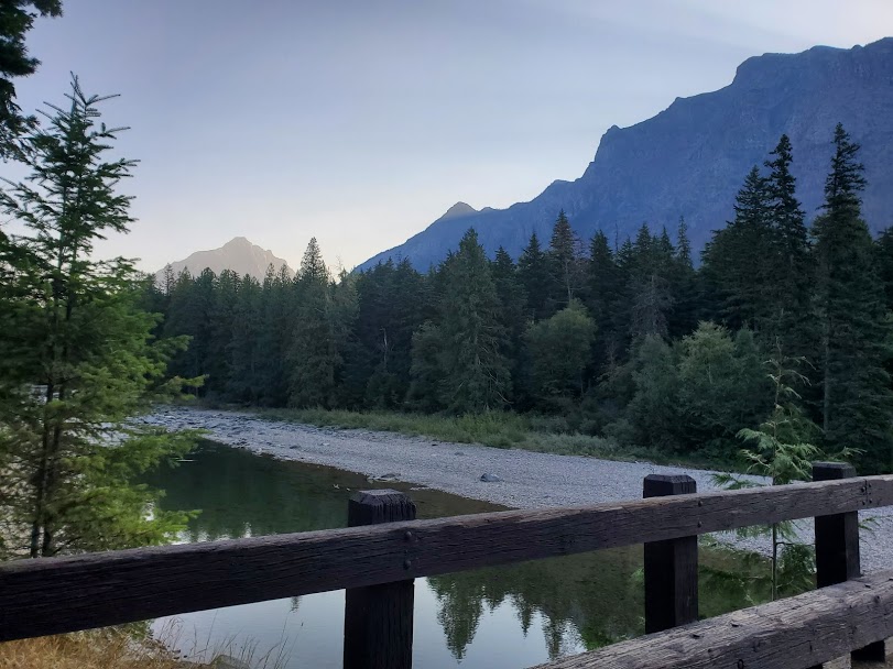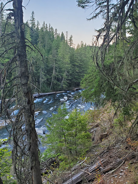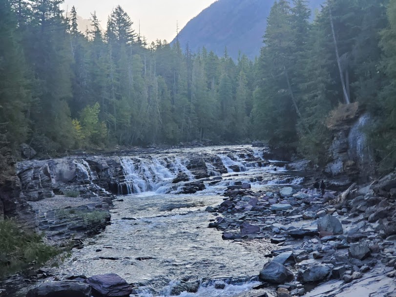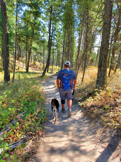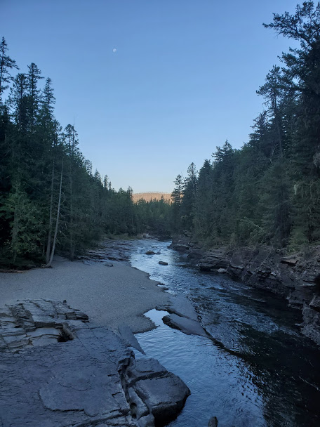 We wanted to hike to Avalanche Lake, but the road was closed just before the Trailhead and there was no parking. We turned around and decided to hike the St. Johns Lake loop, which takes you around McDonald Falls. It was a flat easy hike, so we went back, got the dog, and took her for a hike up Lion Mountain. Though we’d been there before, it’s a couple miles with slight elevation gain. The difference in the lake was significant vs. the last time we saw it.