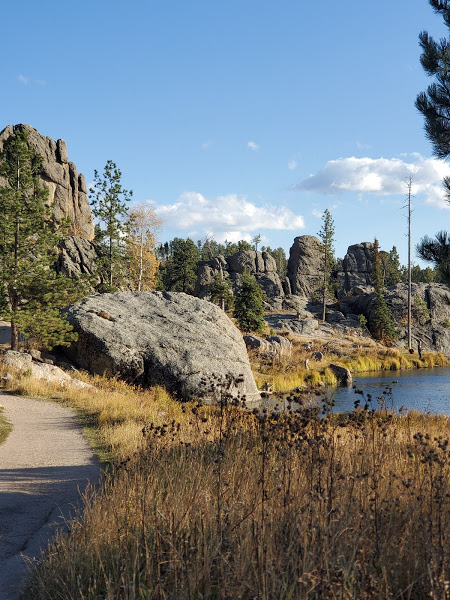 We headed out and spent some time at the Crazy Horse Visitor Center before taking the bus up to the base of the monument. From what the guide was saying, due to advances in technology and some pretty significant donations, they expect to be able to make substantial progress over the next decade. The carving continues to be a family affair, with Korczak’s grand children now working on the sculpture. We had lunch in Keystone, where we were relieved to FINALLY find gluten free taffy (eyeroll), then headed to Mt. Rushmore. We finished the day with another walk around Custer State Park’s Cylvan Lake.