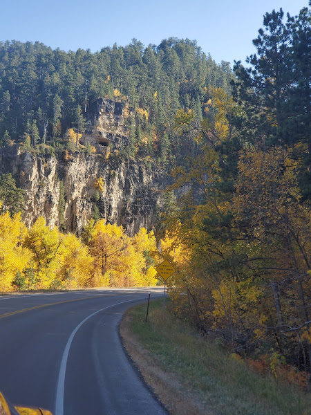 Sturgis was not what we expected, but the Motorcycle hall of fame was really cool. We were here in the off season, so we got to walk around the town with vey little traffic or congestion. Deadwood is mostly small casinos, but the history is everywhere and the town had a really cool feel. We had lunch outside and then walked the town. We were incredibly lucky with the weather – we could not have asked for better, fall colors with blue skies and high 60s/low 70s. The drive back to camp through Spearfish Canyon were stunning, but pics were hard to get due to bug splattage 🙂