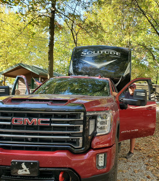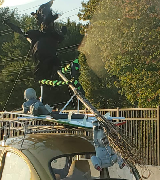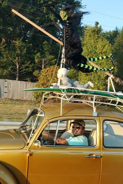 Well. That was the fastest summer of our lives. We had adventures, saw new things and places, learned to love to hike, and met some awesome people. We’re heading back to the property to get some work done and have a doctor look at Jim’s knee before deciding what to do next. We took our time on the way back, we slept in a Home Depot parking lot in Hays, Ks, and then a KOA in Springfield, Mo. In Springfield, we found a dude in a gold bug with the Halloween spirit.