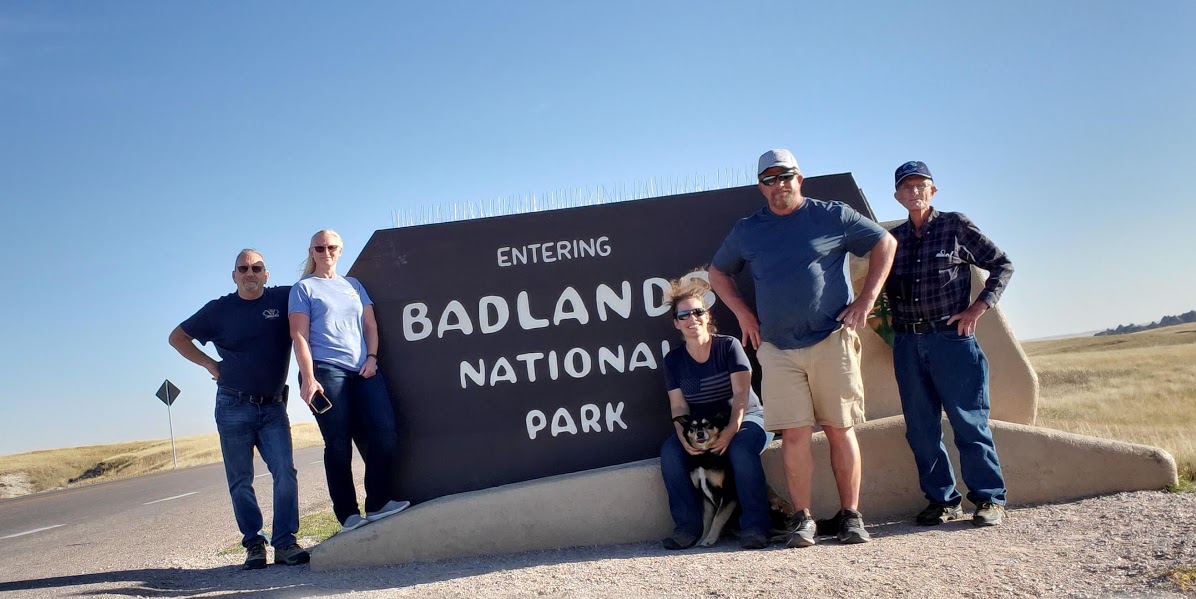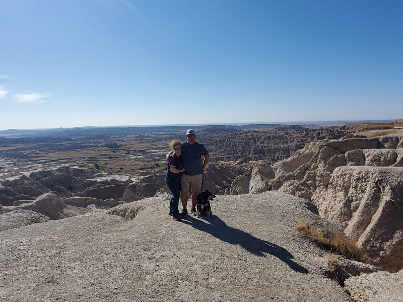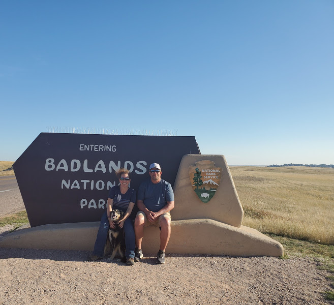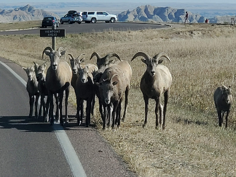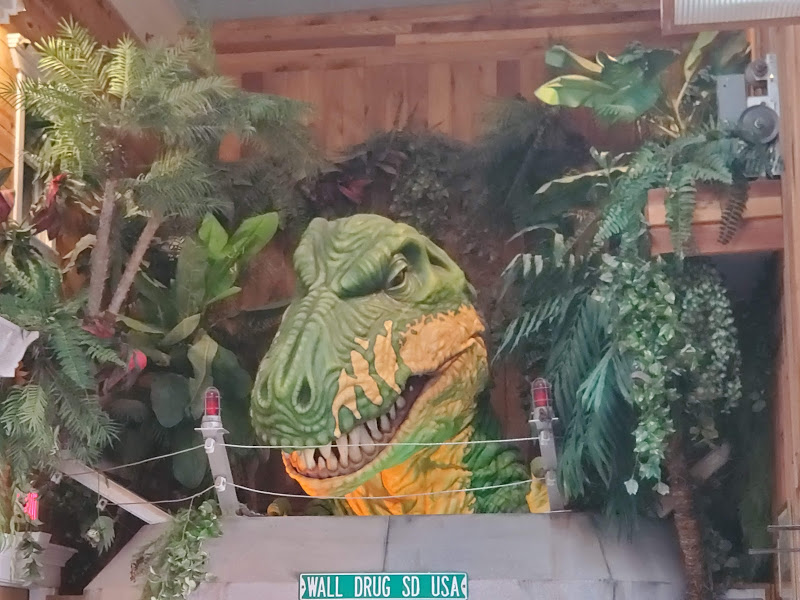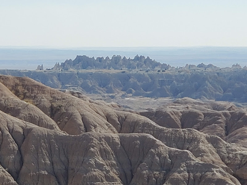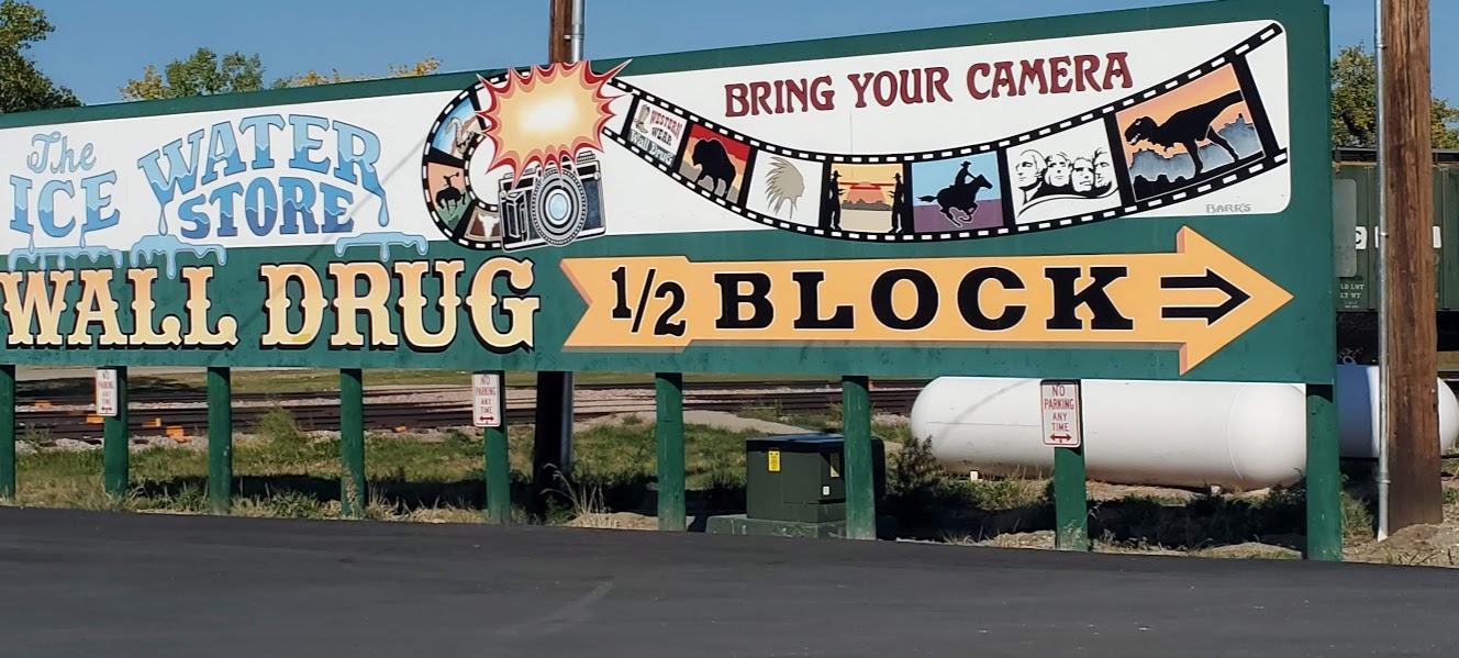 Wall Drug was interesting – I’m amazed at the marketing genius that seems to have built a town around a drug store. It was an eclectic collection of Old West and seemingly anything that someone found interesting, jackalopes, weird carvings, and Jurassic Park, as examples. We headed to the Badlands, which was really interesting because on the north side of the road is flat prairie with the South side dropping sharply to the Badlands geological formations that make up the National Park. The colors within the rock were yellows and reds and not like anything we’d seen before.