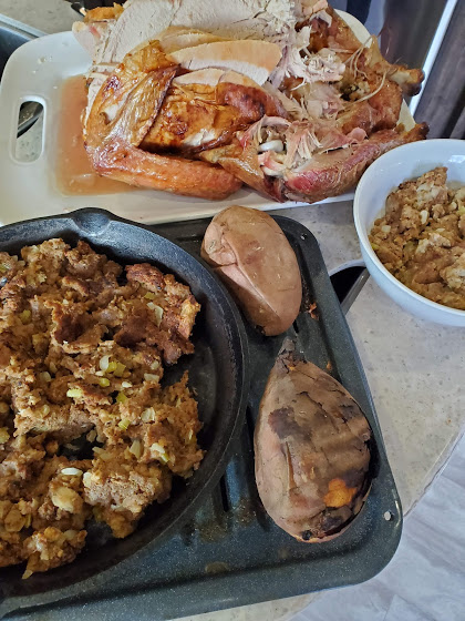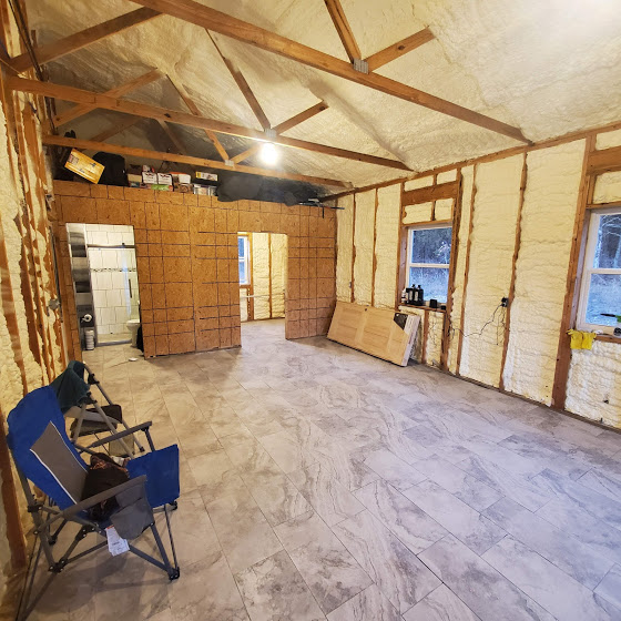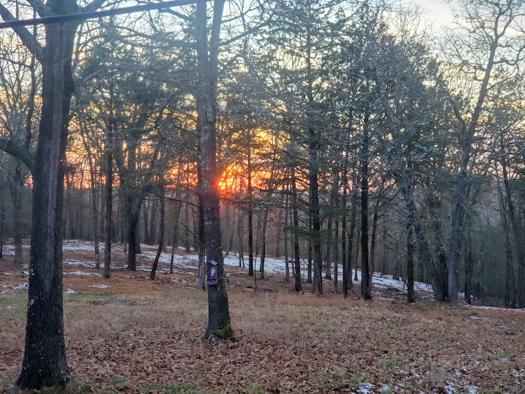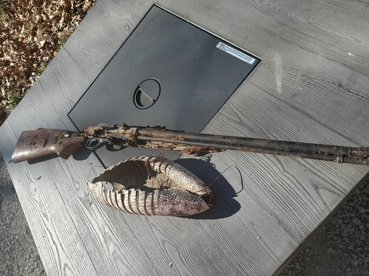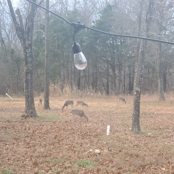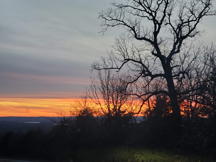 Time flies – Jim finished tiling and building the bathroom in the shed – we got to see Chayse, who helped us move/donate even more stuff and close out the storage unit. We found some old pics of the kids and had our second ever Thanksgiving with just the two of us (no kids). We had a forestry mulcher come out, who did an incredible amount of work taking down small trees/brush in 4 days. The land around the shed is more open, with space between the trees, it’s really cool. We have seen quite a few deer, including a couple brothers, who wrestled for quite a while. Jim found an old squirrel gun and an armadillo shell on the property. We also went down to Mountain View to see Tim, and did a bit of hiking. Tim took us to his hangout, the Rainbow Cafe, where Jim got the world’s smallest chicken fried steak dinner. We also were able to see part of Arkansas’ only wild elk herd. For about 3 weeks it smelled like we were living in a hamster cage due to the amount of shredded cedars 🙂 We had our first snow, M learned to play air guitar, and B enjoys some down time, and gets out to see Idaho.