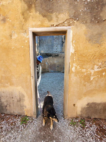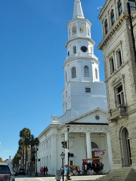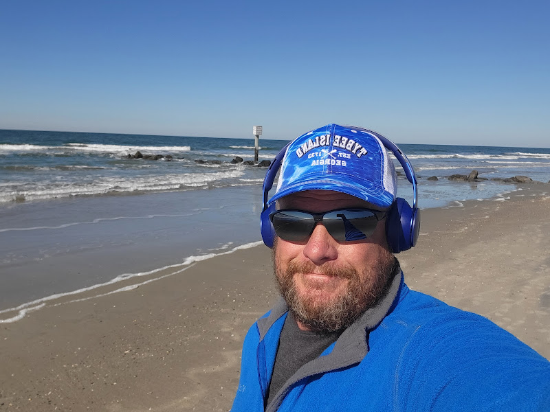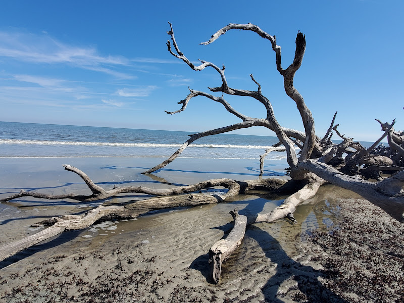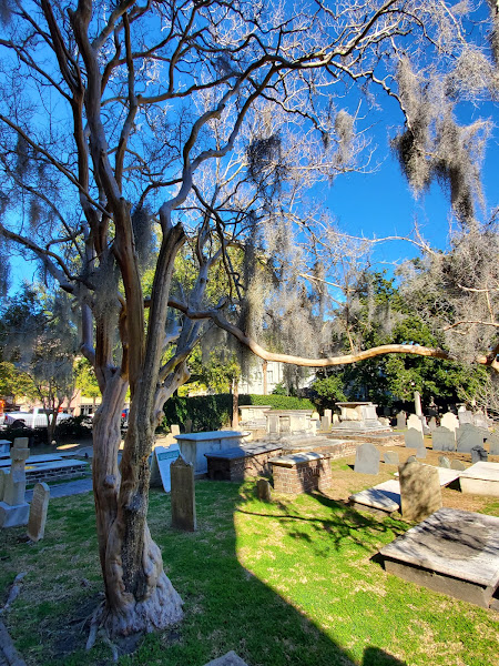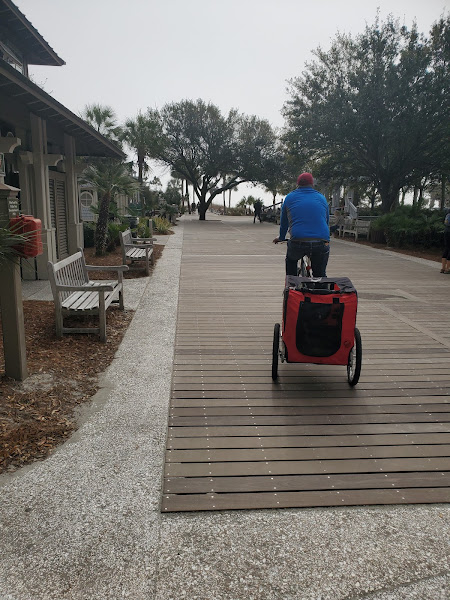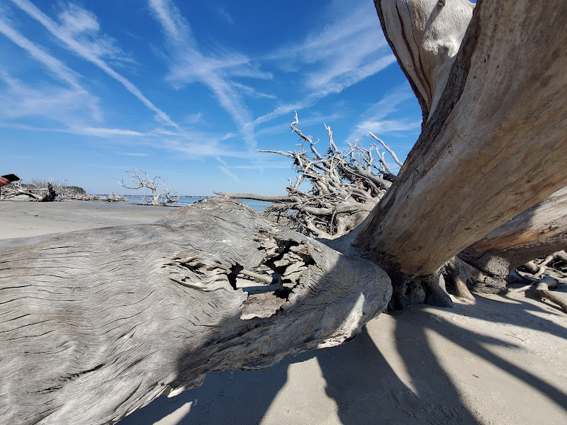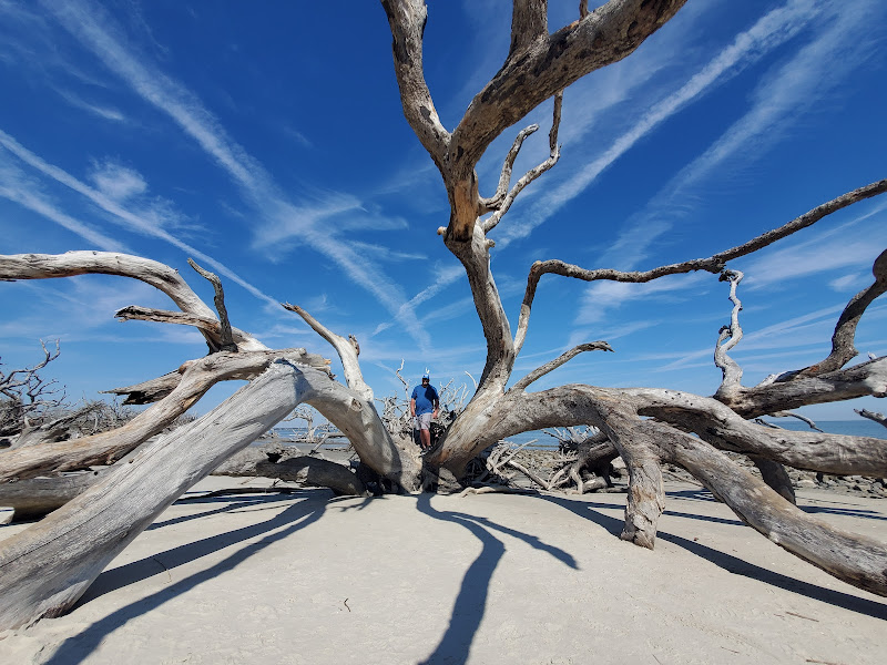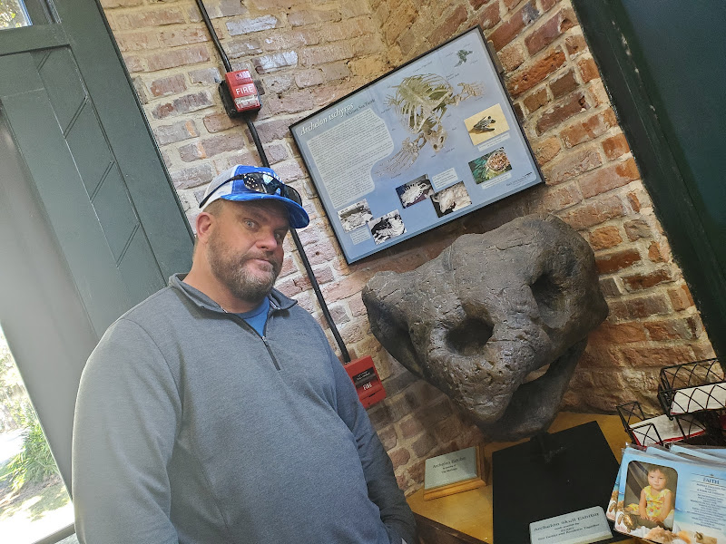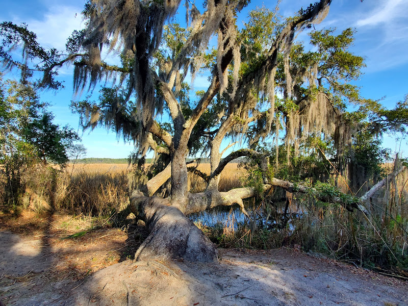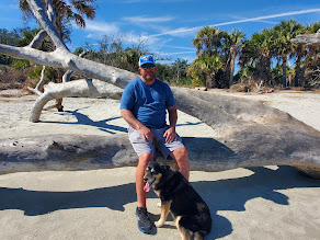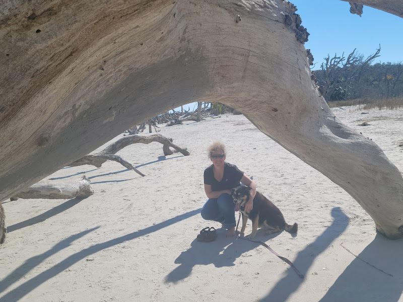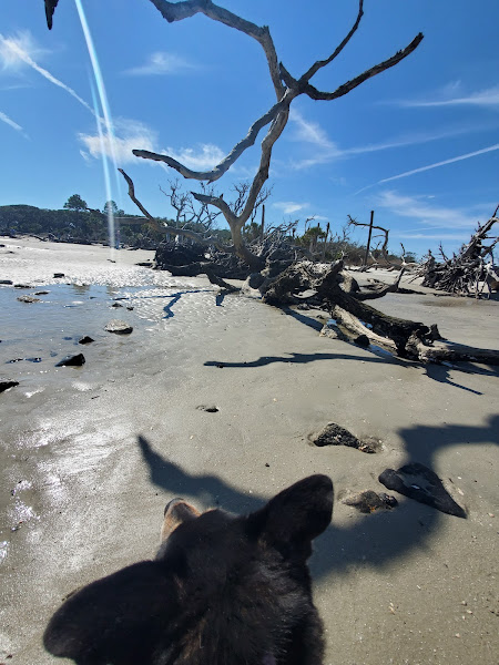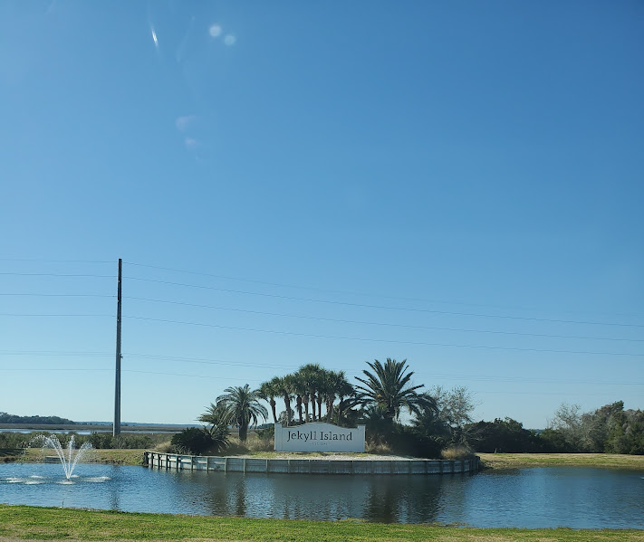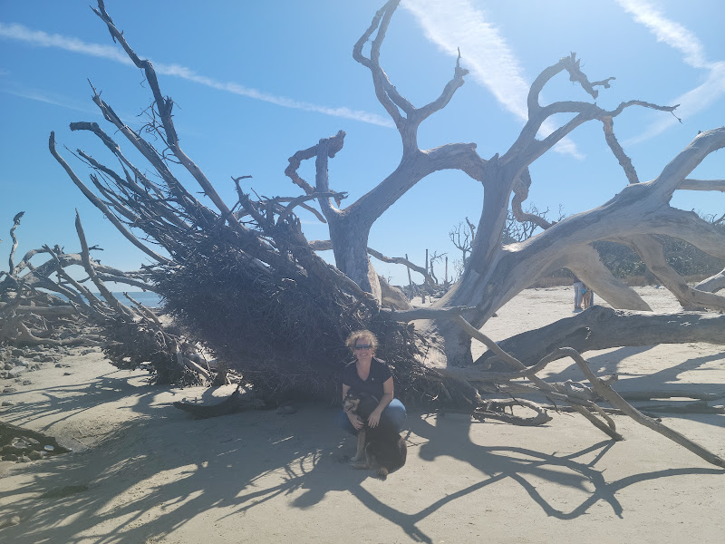 We finally got to Hilton Head on a foggy, rainy day. Nickel didn’t care because the beach is dog friendly and off-leash. We took a very long bike ride in circles looking for the wrong lighthouse (I was incorrectly trying to get to one on a private golf course) and we went to the most disappointing fort ever (a 6 foot dirt wall with weeds and trees growing out of it), then rain and a pig in a truck on the way home. Not to be deterred, we headed to Charleston on a chilly, beautiful cloudless day. We walked along the river, got to see the Circular Congressional Church which was built in1681. A couple more rain days later, upon the advice of Dalton, we went to Jekyll Island and saw the Turtle Rehab, the ruins of a home built in 1936, and driftwood beach. We had a really good lunch at a very questionable food truck. Then we stopped at Old Fort King George on the way back – it’s completely rebuilt based on historical records and is a recreation of the fort and town from 1721 (Nickel was put in the stocks).