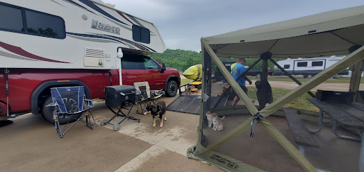 Did a weekend camping/kayak trip to a Mo. State Park. I went to STL for work and got to go to my first Cards game in a couple years. We bought a boat 4 days before we left for the summer and were able to take it out a couple times. After a couple stops, we got to Wyoming and the Tetons. We did some hiking, a float trip on the Yellowstone river and more driving. On our way out, we stopped at Yellowstone Bear world in Idaho – black bears wandered freely, a couple of grizzlies were behind a fence and there were bison and some beautiful elk.