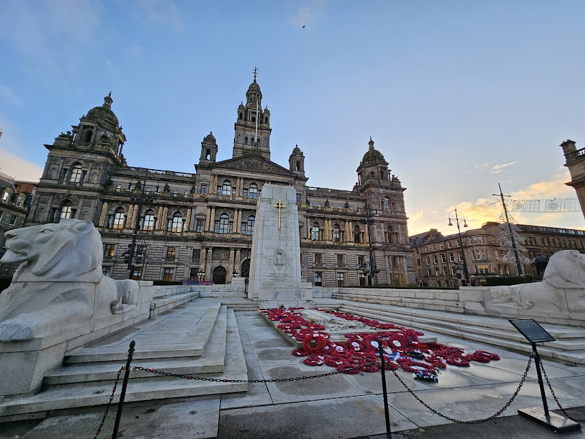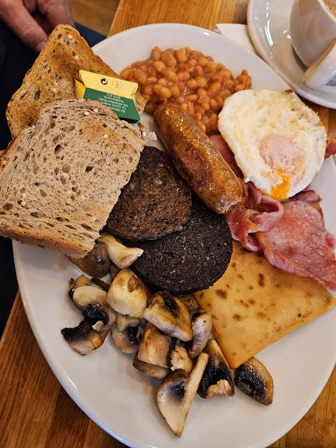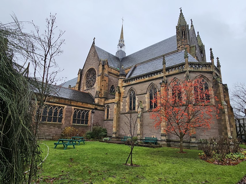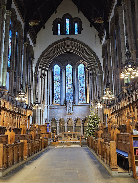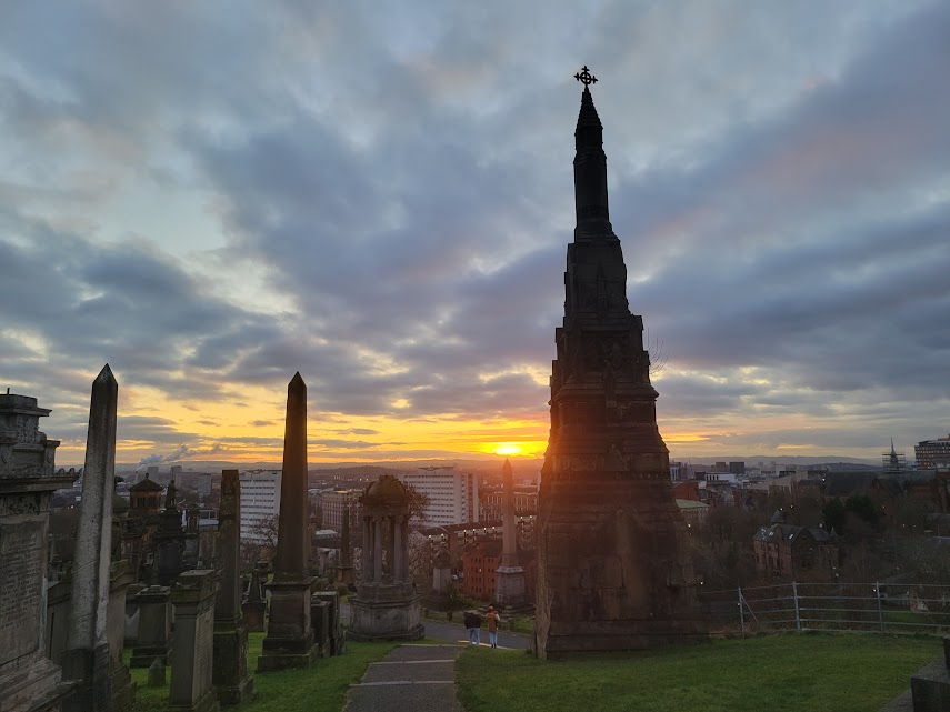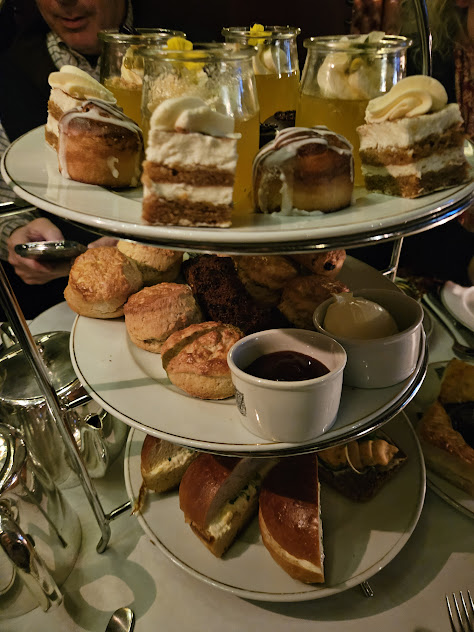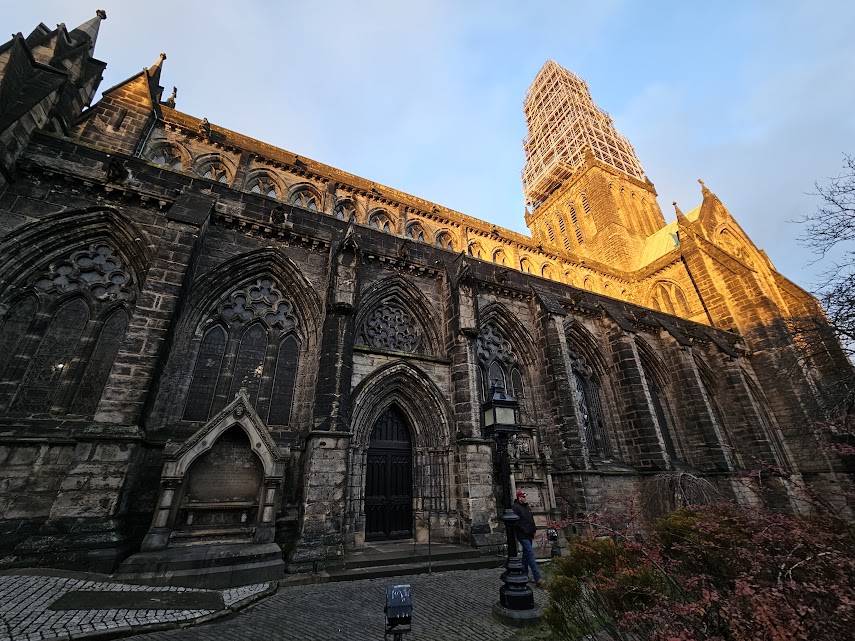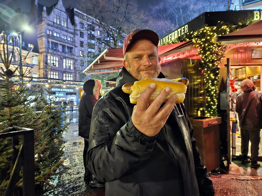 We toured the Edinburg palace, abbey and fort, had a proper Scottish breakfast, and enjoyed high tea with Jim and Becky. We tried clotted cream for the first time and were able to attend a rendition of Handel’s Messiah in a 1700’s cathedral. We took the train to Glasgow, where we saw one of 5 existing metal tall ships, an auto museum, Glasgow University, the outside of the Glasgow cathedral, construction began in the 1100’s and an incredible necropolis on the hill behind it. Jim found a sausage at the Christmas market, but it was sadly not comparable to Jim B’s find!