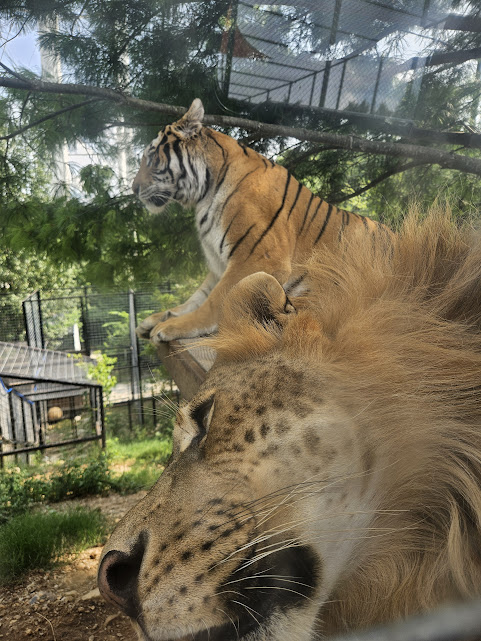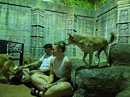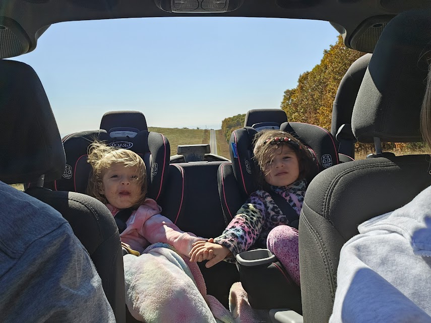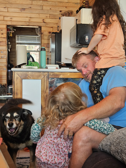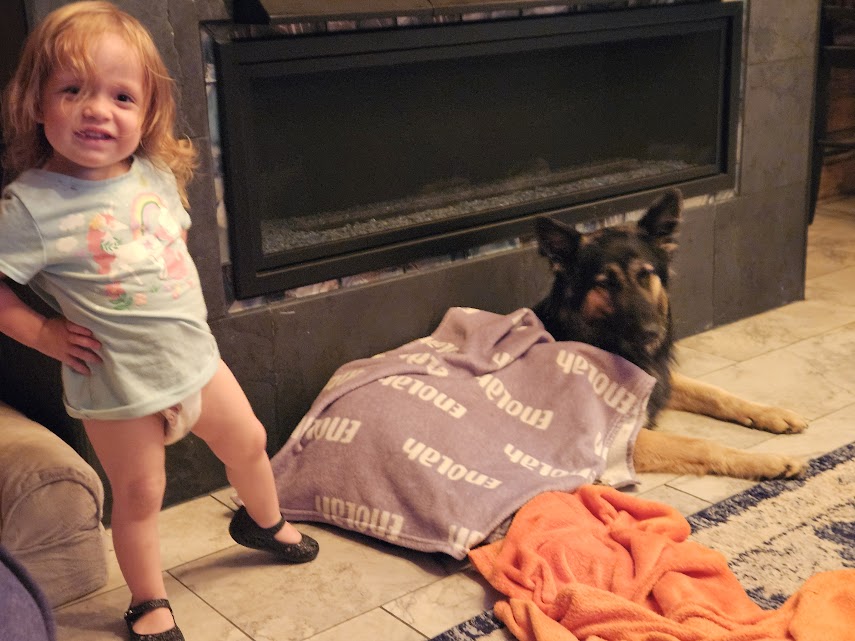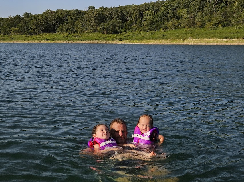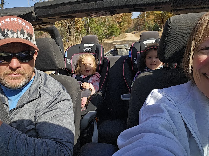 Sherry killed a turkey, we plucked, cleaned, and tried to eat it, but ended up feeding it to the dogs. They were very grateful. We got the lean-to finished, got the porch started, dumped Ian in the lake, and bought a JEEP, the Jeep broke down, spent some time with the g-kids. One chicken had a ‘planned chick’, then another chicken appeared with a bunch of chicks after camping out in the unused fire pit. In mid- October, Sherry ‘moved’ to STL to help Ash with babysitting the g-kids. On a trip back, we went to the County Fair, then Oktoberfest with some friends and we got Britt’s first pics of South Korea, where she played with lemurs and tried some new kinds of food.