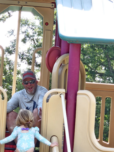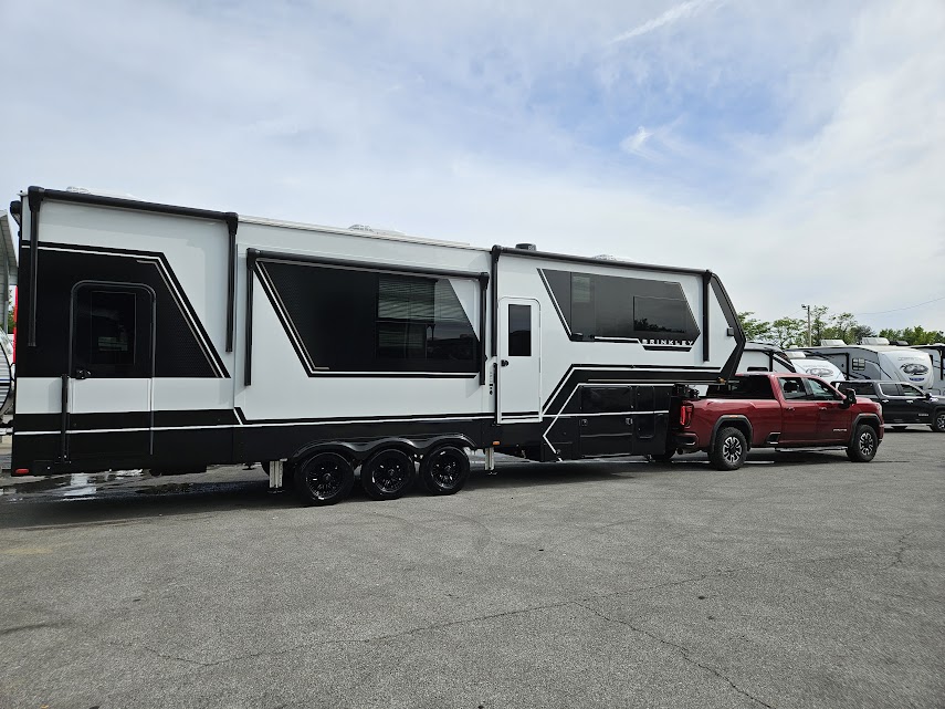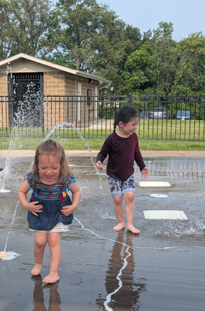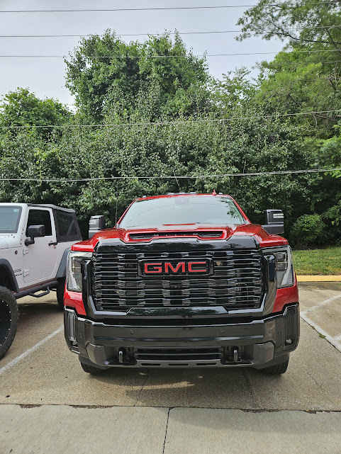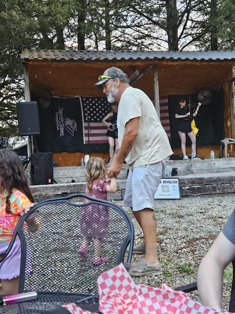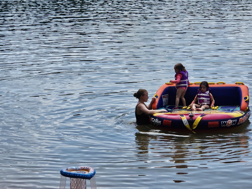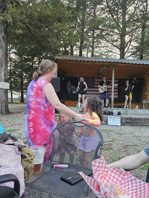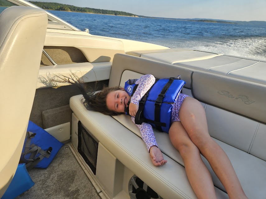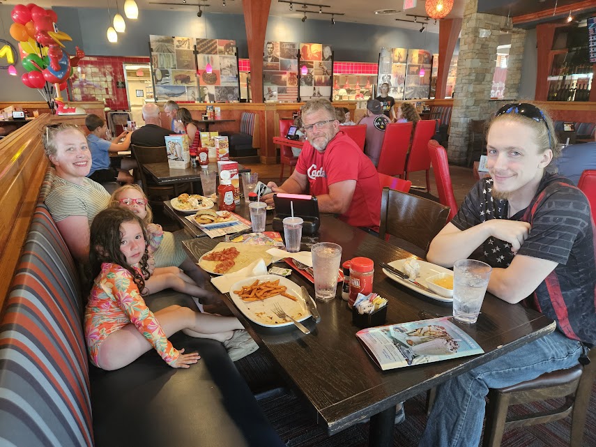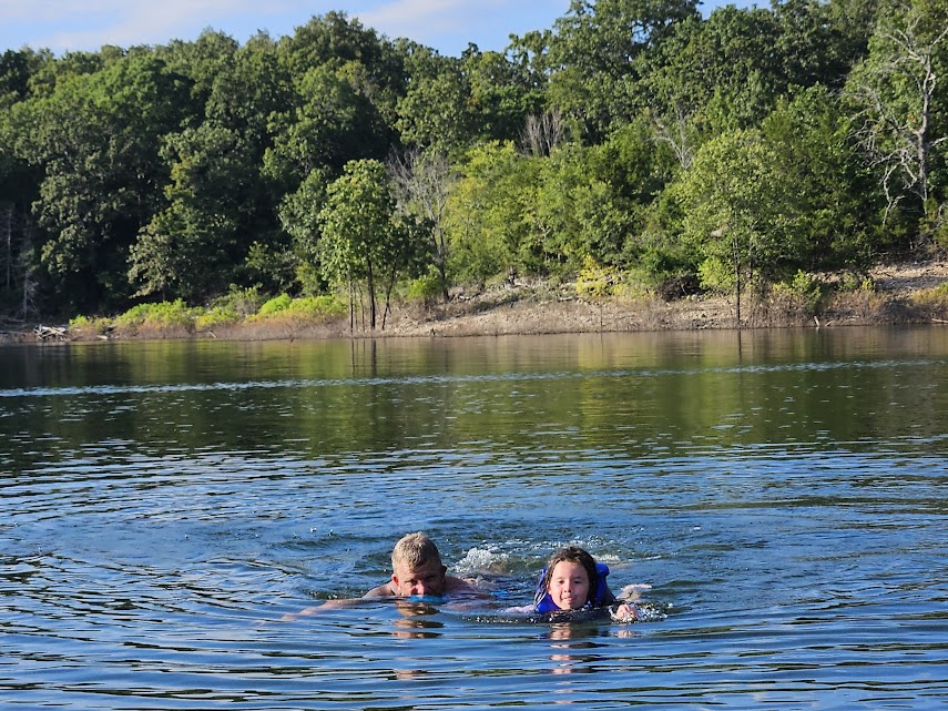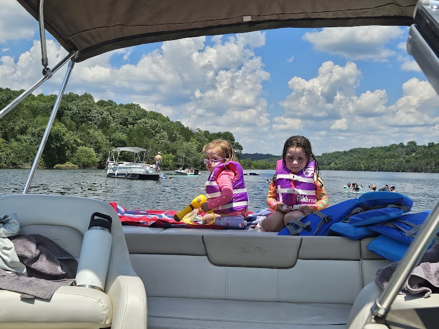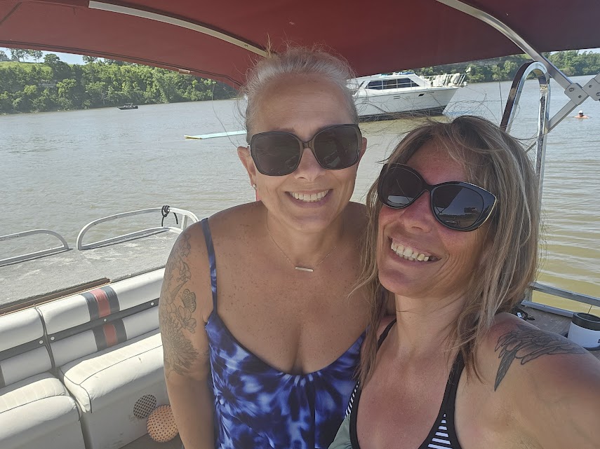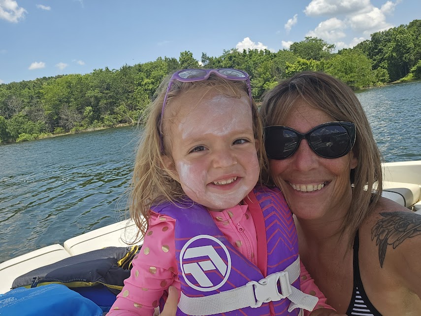 We went a little nuts and got a new camper and truck. The camper looks MUCH larger in the pic than it is, we went with a 38′ Brinkley. So, 3 feet longer than the Solitude. I have an OFFICE with a DOOR!! We also have a deck, which the dogs and kids appreciate. We didn’t really want a dually, but the camper is pretty heavy, so thought it was the safest option. The truck Jim wanted didn’t come in red, so we got the package that did, got a black out package, added some stair stepper things, and removed a bunch of the GMC badges. M turned 6, so we went to a water park and had some amazing cake baked by Mama Bear’s Bakery in St. Peters. We also got to hang out with some good friends (Mama Bear herself) on the river and then went to the property for some lake time. Ash and Chayse came down for July 4th, which was really great. Becky ended up taking a turn for the worse and I lost my sister on 7.13.25.