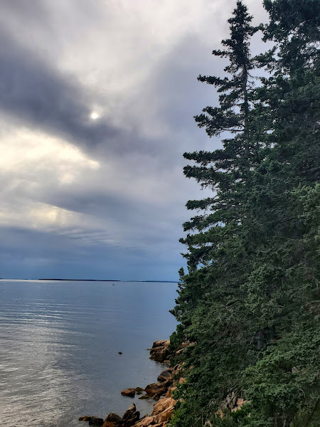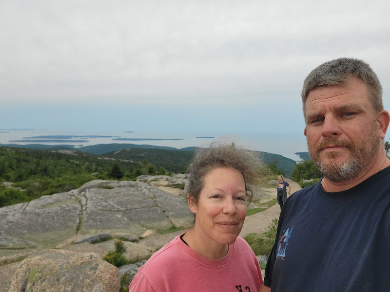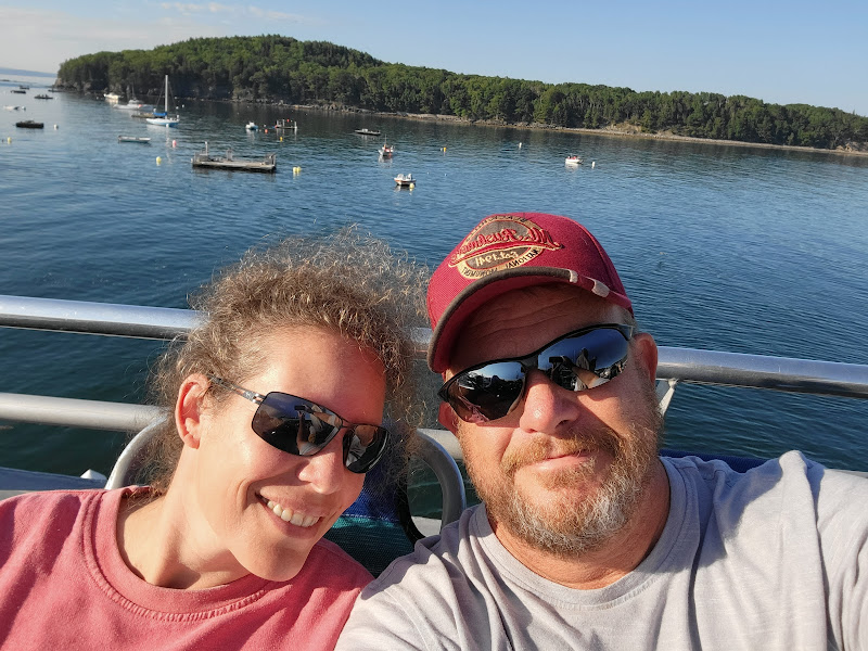 We got to Bass Harbor RV Park and headed out right away. We walked about 1/2 mile to see our first lighthouse and hang out on the rocky shore after the drive. We were there for a little over a week, did several hikes, went whale watching, drove the Cadillac Road bike road on the Carriage Roads and got rained in for a couple days by hurricane Ida. The rocky shore was beautiful, the hikes were great, and we got to hang out with a humpback whale named Nine and her 6th known calf named Bubbles for about an hour, as the calf played and rolled around the boat. Nine hung out below, only surfacing once (on the other side of the boat) but you can see the white spot on her belly below the water’s surface. Acadia was not what we were expecting geographically, being broken up by privately owned land and towns, there were sections of the park, but then hikes off of a state highway. Not a big deal, just not what we’re used to for National Parks. Bar Harbor is a really cute town, but very difficult to navigate with a large truck. During Ida, we had a bit too much time on our hands and made a deal on a new camper. We had been looking at several models, but decided to stick with the same model we have, just 5 years newer. We will pick it up next weekend.